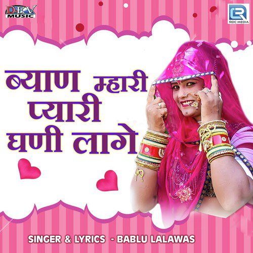 Byan Mhari Pyari Ghani Lage is sung by Bablu Lalawas. Music composed by Rk Studio. Lyrics written by Bablu Lalawas. Released on 2020-07-29. Label: RDC / Dev Music.