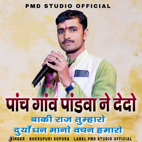 Panch Ganv Pandva Ne De Do Baki Raaj Tumharo is sung by Bherupuri Sopura. Music composed by Prahlad Vaishnav. Lyrics written by Bherupuri Sopura. Released on 2023-08-29. Label: PMD Studio Official.