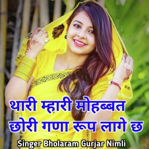 Thari Mhari Mohabbat Chori Gana Roop Lage Chh is sung by Bholaram Gurjar Nimli. Music composed by Shivraj Gurjar. Lyrics written by Shivraj Gurjar. Released on 2023-04-21. Label: Mama Music.