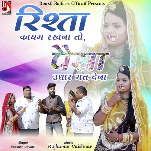 Rista Kayam Rakhna To Paisa Udhar Mat Dena is sung by Dinesh Rathore. Music composed by Rajkumar Vaishnav. Lyrics written by Dinesh Rathore. Released on 2023-06-09. Label: DINESH RATHORE OFFICAIL.