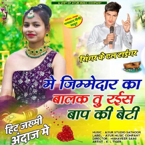 ME JIMEDAR KA BALAK TU RAISS BAAP KI BETI is sung by K. L Tiger Borkhandi. Lyrics written by K. L Tiger Borkhandi. Released on 2024-01-04. Label: Ayur Music Company.