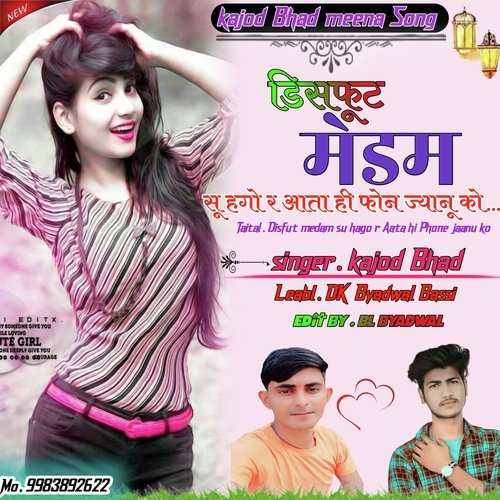 Disfut medam su hago r Aata hi Phone jaanu ko (Rajsthani) is sung by Kajod Bahd. Lyrics written by Kajod Bahd. Released on 2022-11-10. Label: DK Byadwal Ji Bassi | ST.