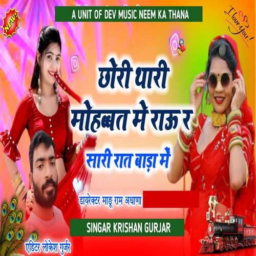Chori Thari Mohabbat Me Rovu R Saari Raat Bada Mein is sung by Krishan Gurjar. Music composed by Maru Ram Gurjar. Lyrics written by Maru Ram Gurjar. Released on 2023-11-27. Label: Dev Music Neem Ka Thana.