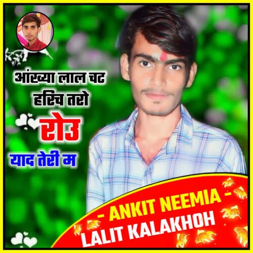 Ankhya Laal Chat Harich Taro Rou Yaad Teri Me is sung by Lalit Kalakhoh. Music composed by Ankit Neemla. Lyrics written by Ankit Neemla. Released on 2023-07-24. Label: Ankit Neemla Official.
