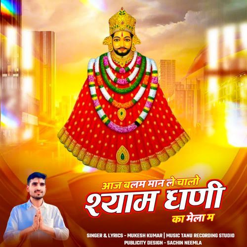 आज बलम मान ले चालो श्याम घणी का मेला म is sung by Mukesh Kumar. Music composed by Tanu Recording Studio. Lyrics written by Mukesh Kumar. Released on 2026-01-07. Label: Poonam Music.