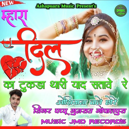 Mhara Dil Ka Tukda Thari Yad Aave Re is sung by Pappu Gunrat Gopalpura. Music composed by Dev Music Sawaibhoj. Lyrics written by Pappu Gunrat Gopalpura. Released on 2022-05-27. Label: Jay Ashapura Music | ST.
