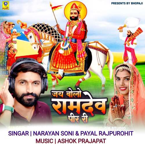 Jai Bolo Ramdev Pir Ri is sung by Narayan Soni. Music composed by Ashok Prajapat. Lyrics written by Rajasthani Bhajan. Released on 2023-09-30. Label: A-one Music Rajasthani.