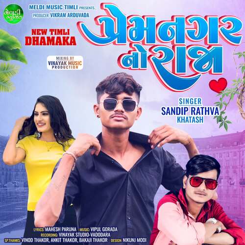 Prem Nagar No Raja is sung by Sandip Rathva Khatash. Music composed by Vipul Gorada. Lyrics written by Mahesh Paruna. Released on 2023-11-26. Label: Meldi Music.