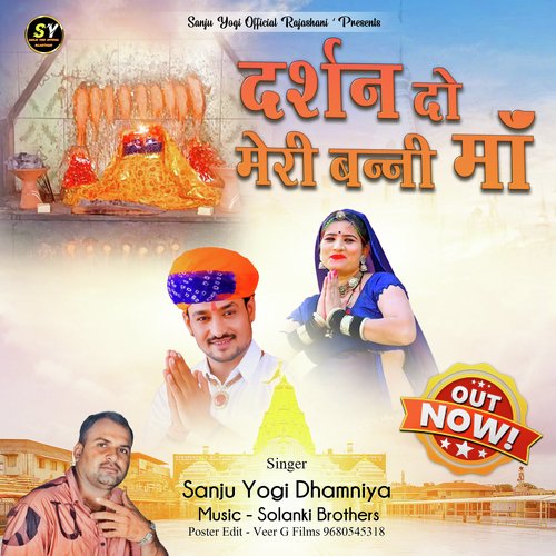 Darshan do mari banni ma is sung by Sanju Yogi Dhamaniya. Music composed by Sanju Yogi. Lyrics written by Priyanka Yogi. Released on 2023-07-22. Label: Sanju Yogi Official Rajasthani.