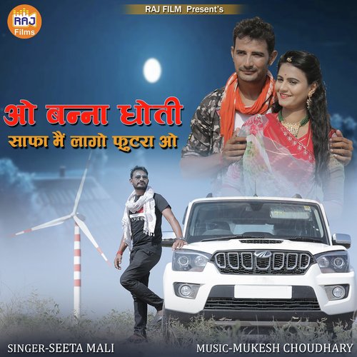 O Banna Dhoti Safa Me Lago Futra O is sung by Seeta Mali. Music composed by Mukesh Choudhary. Lyrics written by Mukesh Choudhary. Released on 2021-06-02. Label: Raj Films.