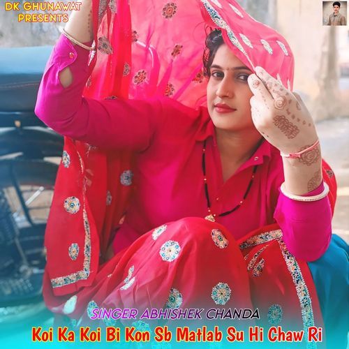 Koi Ka Koi Bi Kon Sb Matlab Su Hi Chaw Ri is sung by Singer Abhishek Chanda. Music composed by K K Meena. Lyrics written by Ravi Meena. Released on 2024-11-08. Label: DK Ghunawat.