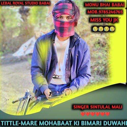 MARE MOHABAAT KI BIMARI DUWAHI (Rajsthani) is sung by Singer Sintulal Mali. Lyrics written by Singer Sintulal Mali Monu Bhai Babai. Released on 2022-12-26. Label: Royal studio babai | ST.