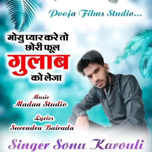 Mosu Pyar Kare To Chori Phool Gulab Le Ja is sung by Sonu Karouli. Music composed by Madan Studio. Lyrics written by Surendra Bairada. Released on 2023-01-05. Label: Pooja Films Studio.