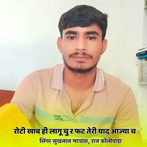 रोटी खाब ही लागू चु र फट तेरी याद आज्या च is sung by Sukhlal Matwas. Music composed by Raj Koliwada. Lyrics written by Raj Koliwada. Released on 2023-12-20. Label: Raj Koliwada.